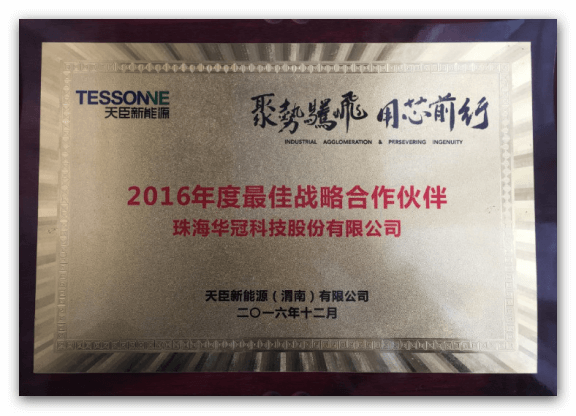 在剛剛召開的天臣新能源(渭南)有限公司動力電池發(fā)展交流暨2017年度供應(yīng)商大會上,華冠科技從眾多供應(yīng)商中脫穎而出,被評為2016年度天臣新能源的“最佳戰(zhàn)略合作伙伴”!