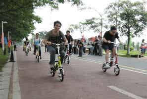 同日,在廣州大學城自行車綠道舉辦的猛獅一秒鐘折疊鋰電自行車騎行體驗活動現場,大學生們積極參與其中,在時尚環保、綠色騎行的樂趣中體驗“新人類、新生活、新能源”的魅力。