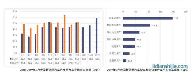 從單臺(tái)車平均裝車電量情況來(lái)看,2019年9月,受新能源客車產(chǎn)量小幅上升帶動(dòng),我國(guó)新能源汽車按車型劃分的平均裝車電量51.7.8kWh,環(huán)比上升8.2%。