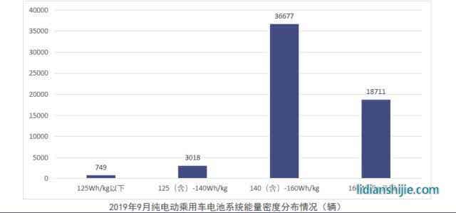 純電動(dòng)乘用車電池系統(tǒng)能量密度分布來(lái)看,2019年9月,我國(guó)純電動(dòng)乘用車系統(tǒng)能量密度在160Wh/kg及以上區(qū)間產(chǎn)量共計(jì)1.9萬(wàn)輛,占純電動(dòng)乘用車總產(chǎn)量由26.3%上升至31.6%;在125(含)-140Wh/kg和140(含)-160Wh/kg以上區(qū)間的車型產(chǎn)量分別為0.3萬(wàn)輛和3.7萬(wàn)輛,分別占純電動(dòng)乘用車總產(chǎn)量5.1%和62%。