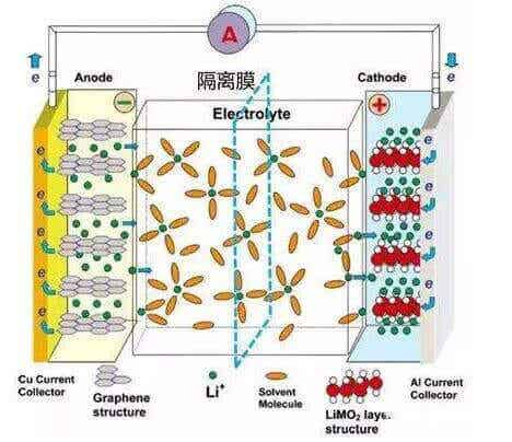 在充電時,電池的正極上有鋰離子(Li+)生成,生成的鋰離子(Li+)經過電解液從正極運動到負極,而負極的石墨是有微孔的層狀結構,到達負極的鋰離子(Li+)嵌入到碳層的微孔中,嵌入的鋰離子(Li+)越多,充電容量越高;在放電時(即我們使用電池的過程),嵌在負極碳層中的鋰離子(Li+)脫出,又運動回正極,回到正極的鋰離子(Li+)越多,放電容量越高。我們通常所說的電池容量指的就是放電容量。