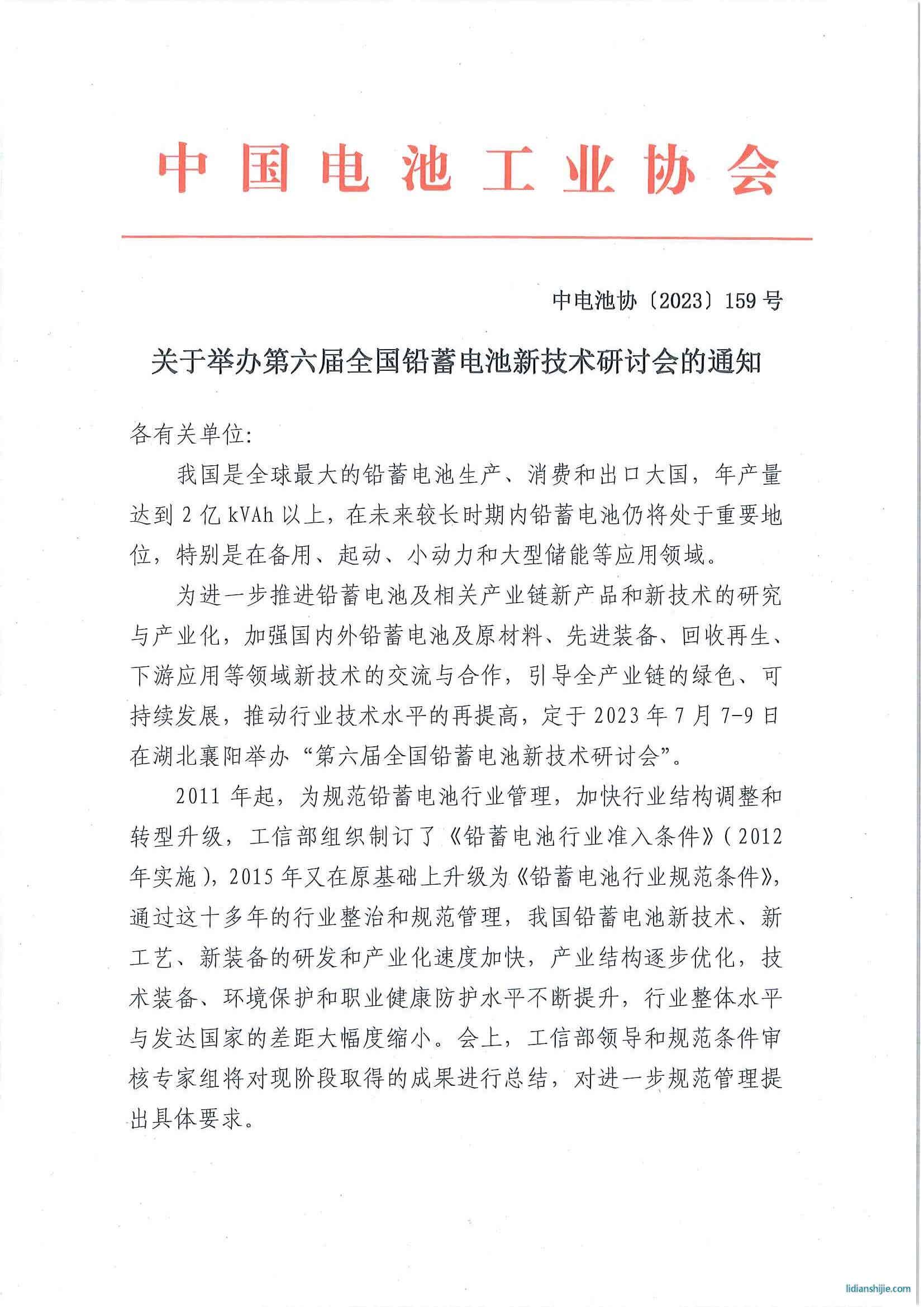 關(guān)于舉辦第六屆全國鉛蓄電池新技術(shù)研討會(huì)的通知 2023-06-07 535260 核心提示:文件下載:第六屆全國鉛蓄電池新技術(shù)研討會(huì)會(huì)議通知.pdf作者:中國電池工業(yè)協(xié)會(huì) 文件下載: 第六屆全國鉛蓄電池新技術(shù)研討會(huì)會(huì)議通知.pdf 作者:中國電池工業(yè)協(xié)會(huì) 點(diǎn)贊 0舉報(bào)收藏 0打賞 0評論 0分享 94 更多>同類鋰電資訊 • 容誠電子落地濟(jì)源 萬洋拓展鋰電領(lǐng)域新布局 • 資源稅對鋰礦成本的影響 • 美國轉(zhuǎn)向油車開始取消亞洲鋰電池訂單,美股鋰電 • 鋰電池打響漲價(jià)“第一槍”,德加能源電池系列價(jià) • 感覺未來主流會(huì)是大電池增程 • 德方納米榮獲2025年度正極材料優(yōu)質(zhì)供應(yīng)商稱號 • 奔馳正加速推進(jìn)電動(dòng)車固態(tài)電池上車進(jìn)程 • 磷酸鐵鋰電池漸成市場主力 • 迷之碳酸鋰庫存 • 鋰電產(chǎn)業(yè)鏈周記 | 寧德時(shí)代聯(lián)手五大車企發(fā)布10