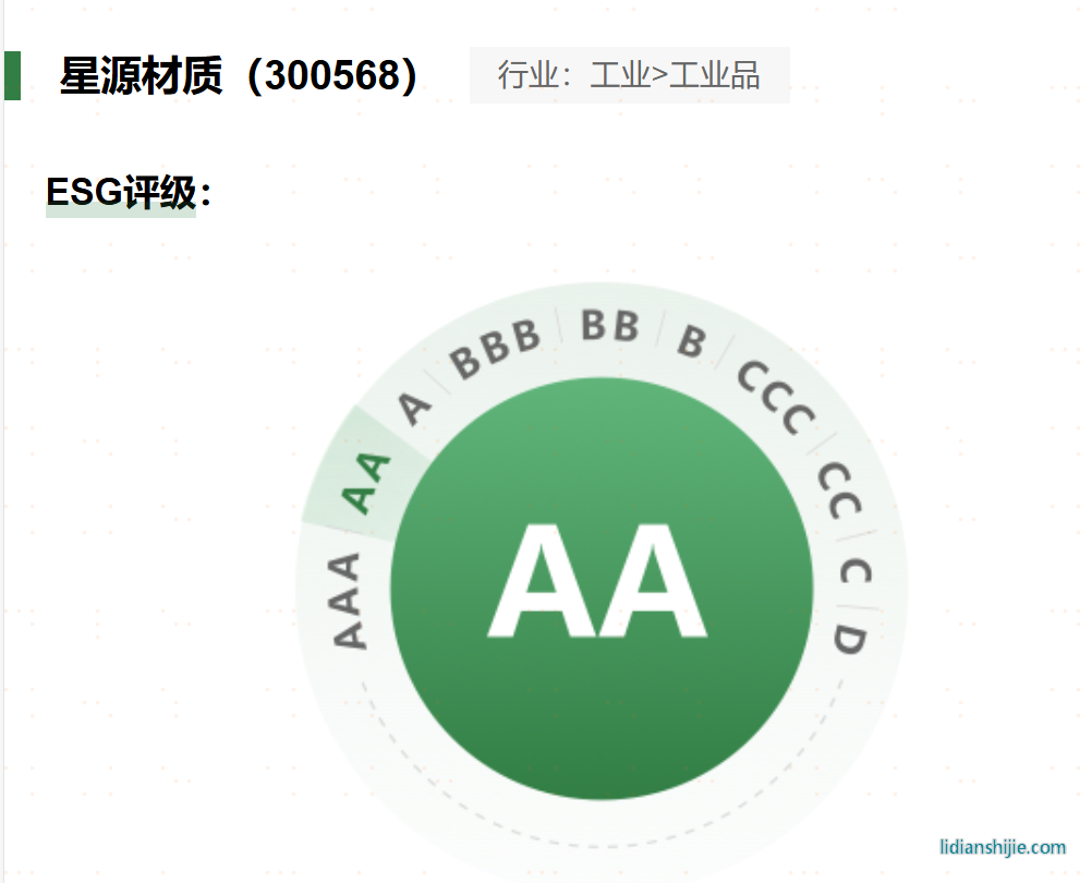 核心提示:近日,深交所國證ESG評(píng)級(jí)結(jié)果顯示,星源材質(zhì)評(píng)級(jí)提升至AA級(jí)。國證ESG評(píng)級(jí)由深交所全資控股子公司深圳證券信息有限公司推出,指標(biāo)
