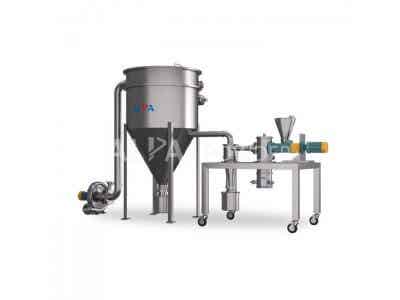 產品特點:結構緊湊,組合方便,高效氣密封,占地面積小,PLC控制,操作方便,適用面廣。拆裝清洗方便無死角。可適用于多種粉碎工藝。