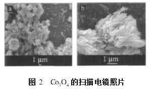 LinChuan等使用醇鹽水解法制備了超細Co2O3電極活性材料,單電極比電容達到291F/g。此外CoOx和其他金屬氧化物的復合也被廣泛地研究。筆者以檸檬酸為模板,以硝酸鈷為原料利用水熱法制備了前驅體,200℃熱分解制得Co3O4,研究其在6mol/LKOH溶液中和-0.1~0.5V(vs.SCE,下同)電位范圍內,循環伏安、恒流放電等電化學電容性能。