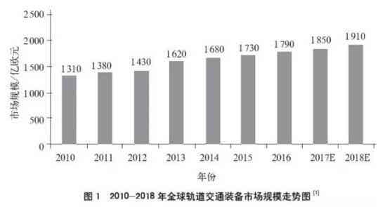 近年來,在國家政策的推動(dòng)下,我國一線乃至二三線城市迎來了軌道交通建設(shè)的熱潮。據(jù)統(tǒng)計(jì),目前中國已有至少45個(gè)城市申報(bào)建設(shè)城市軌道交通項(xiàng)目,其中39座城市獲批,共有20個(gè)城市開通并已經(jīng)運(yùn)行城市軌道交通。全球軌道交通的產(chǎn)值也從2010年的1 310億歐元增長到2013年的1 620億歐元,預(yù)計(jì)到2018年,將突破1 900億歐元(圖1)。