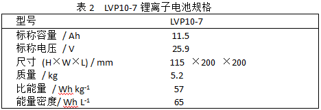 LVP10電池7只串聯連接的電池組“LVP10-7”的外觀照片及規格分別示于圖9及表2。外部電池組的監控裝置(BMU)示出電池電壓與電池溫度,所以每只電池應安裝電壓檢測導線與熱敏電阻。另外,為了防止外部設備發生短路時通過短路電流避免外部設備受損,在電池阻內部裝有保險絲。